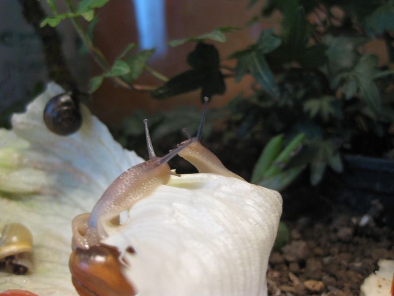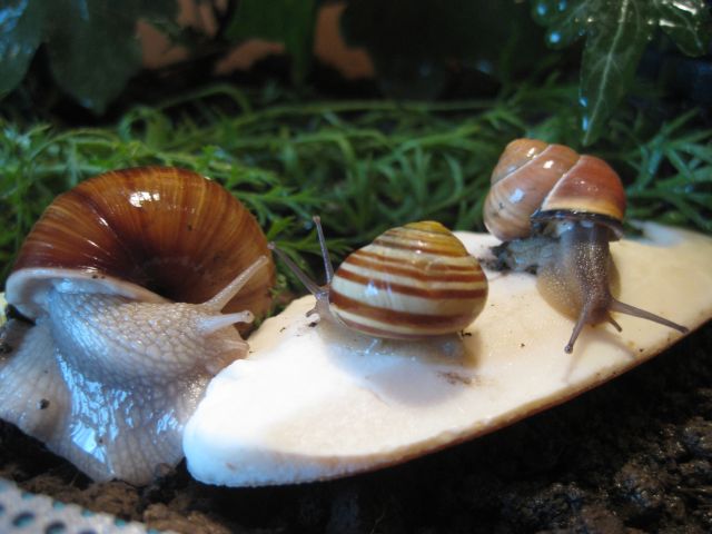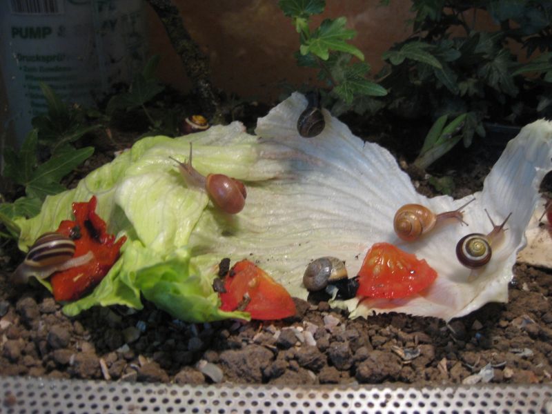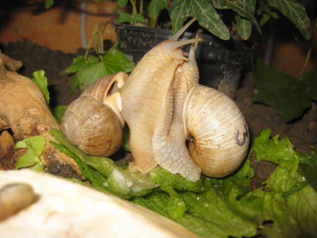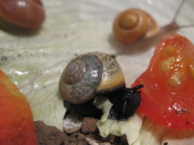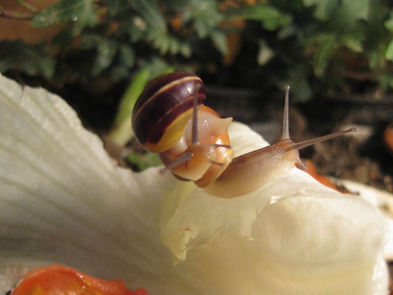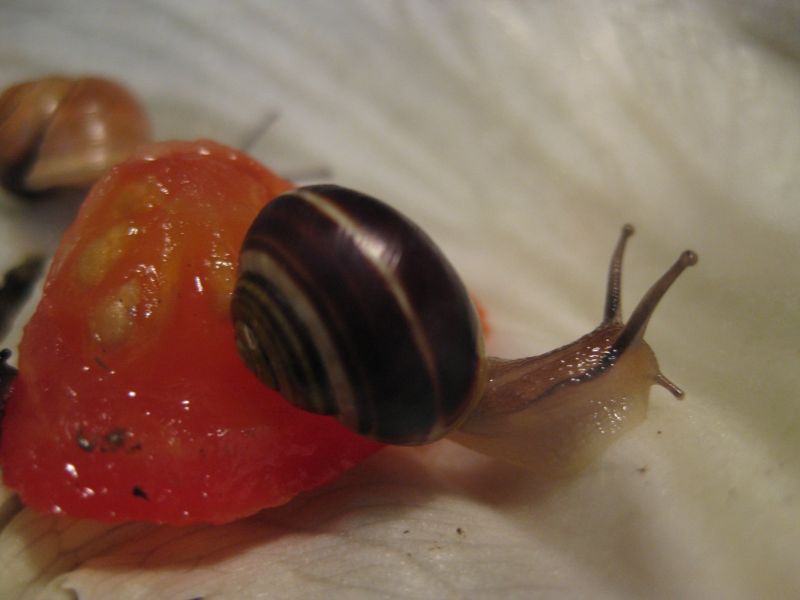 die 2 gartenbänderschnecken haben auch namen, die eine ist gelb mit braunen streifen , wird A - Schneckchen genannt