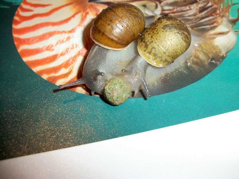 Hier sind sie sich in einer Umzugsgefäss nahe gekommen gleich kurz vor dem Wechsel zu einem neuen Terrarium. Und leider auch kurz vor dem Tod der jüngeren Grunzschnecke.