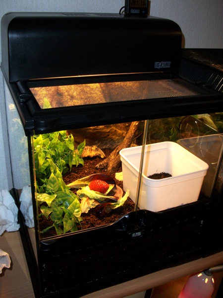 Leckeres Dinner für die Schneck. Wurde alles aufgegessen ausser die Erdbeere. :S
