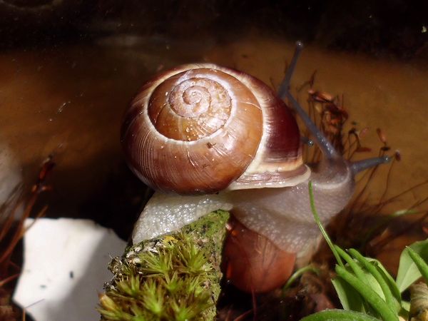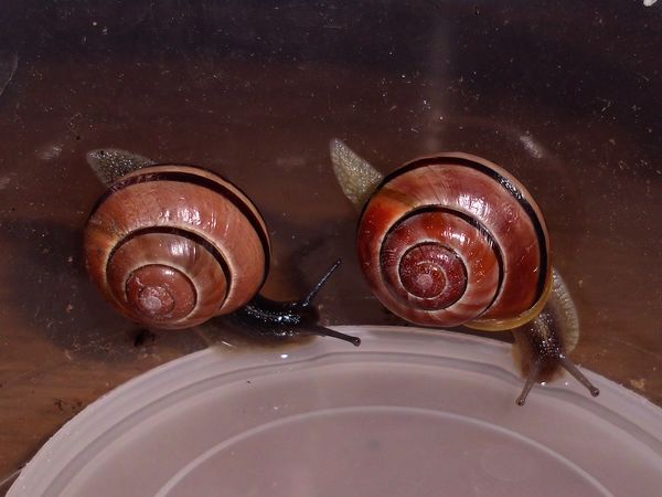 Dann beherberge ich im Moment vier erwachsene Schließmundschnecken, interessant zu beobachten, ich wollte sie einfach mal näher kennenlernen (wie ich mich auch sonst mit vielen Krabblern befasse, die meinen Weg kreuzen). Dass die mir eine kleine Baby-Schwemme bescheren, weil sie lebendgebärend sind (und eine Eiersuche daher erfolglos), damit hatte ich natürlich nicht gerechnet. Die Schlingel werden demnächst wieder in ihre natürliche Umgebung kommen. Aber putzig sind die Kleinen allemal, und sicher auch hier interessant, mal ein bisschen von der Entwicklung mitzubekommen. Bei ihnen sind außerdem noch zwei kleine Schnirkels untergebracht.