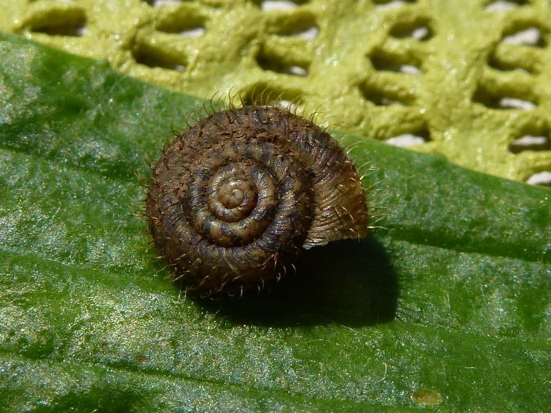 Auch viel vorhanden waren die Haarschnecken (Trochulus hispidus), die alle ganz eng bei den Baumschnecken auf riesigen Blättern lebten. Ein Stück weiter war am Rande einer Wiese zudem eine Bernsteinschneckenpopulation (Succineidae).