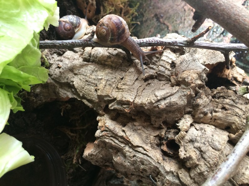 In der kleinen Box sind meine beiden Baby-Cornus wohl auf. Sie sind ja so hübsch - vor allem die ältere, Lissy. Ihr Gehäuse ist dunkel und genauso wie ich mir ihre drei Vorfahren gewünscht hätte ^^. Der kleine - inzwischen hat er einen Namen: Jim (von Jim Knopf) wächst auch prächtig wird aber wohl heller? nuja vllt dunkelt er noch nach aber so wie es jetzt aussieht habe ich zwei sehr verschiedene gesunde junge Schnecken da