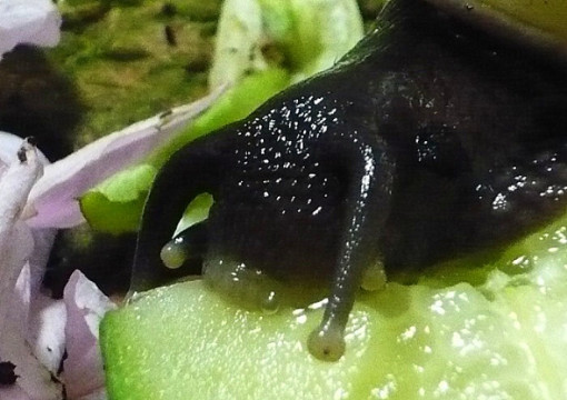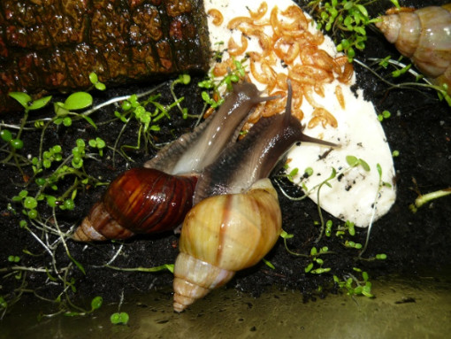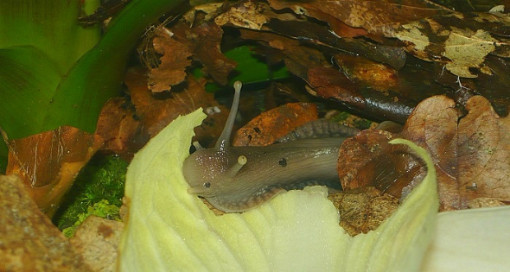 Und auch die müdeste Schneck läßt sich mit einem Salatblatt aus dem Laubparadies hervorlocken...