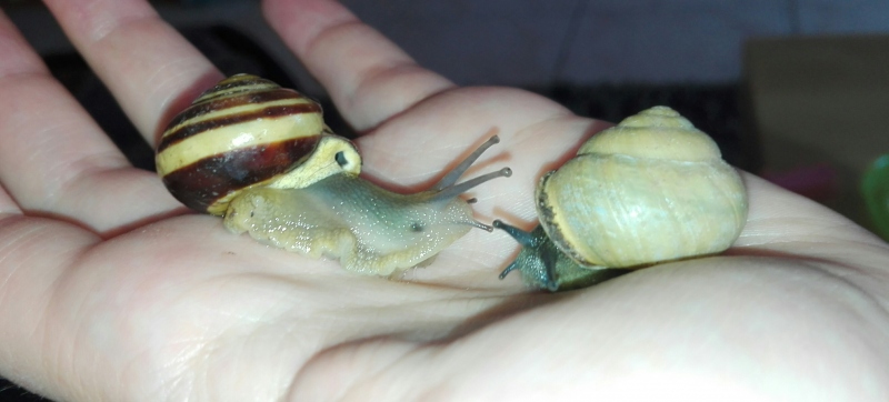 keine Sorge also. Die Tiere werden schön in Ruhe gelassen seit dem Foto oben. Der Kleine hat seinen “Bedarf“ wohl gestillt nach dem einmaligen halten der Hainbänderschnecke.