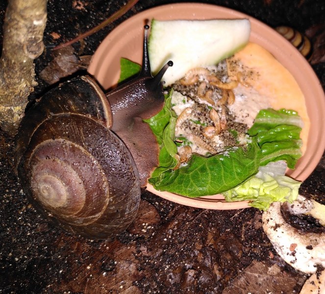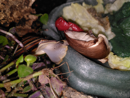 ), Nail hält jetzt kurz nach Dende eine Trockenruhe und gestern habe ich Piccolo und Dende in flagranti beobachten können. Danach haben sie sich zu zweit über einen halben Champignon hergemacht. Generell futtern und wachsen sie ordentlich
