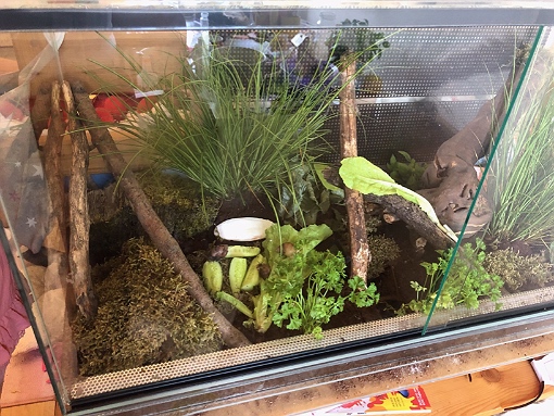 Sie haben sofort neugierig das ganze Terrarium erkundet und haben gefressen.