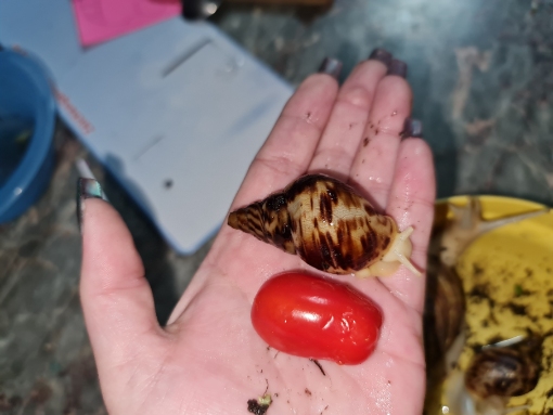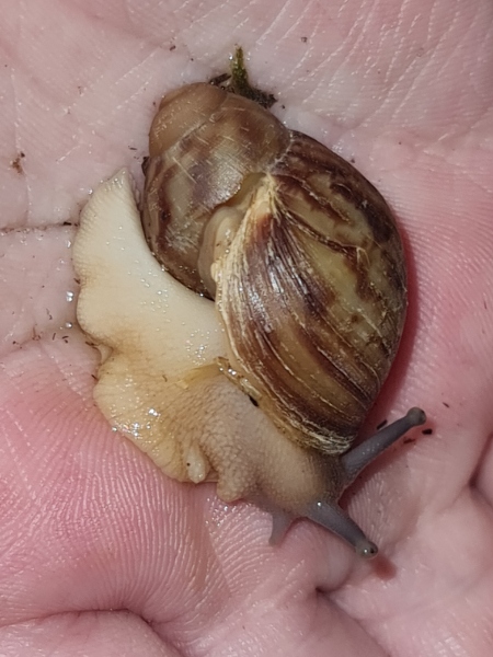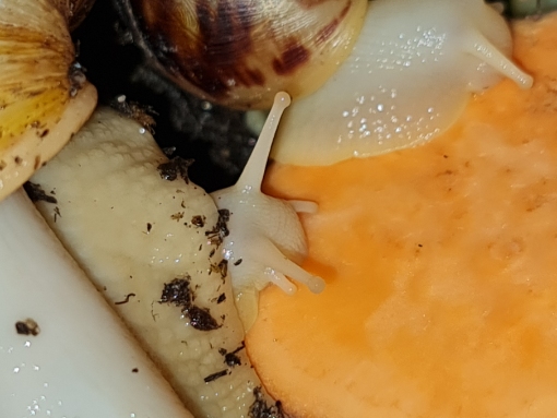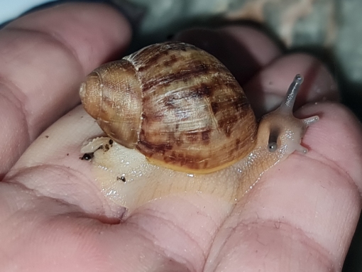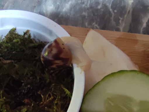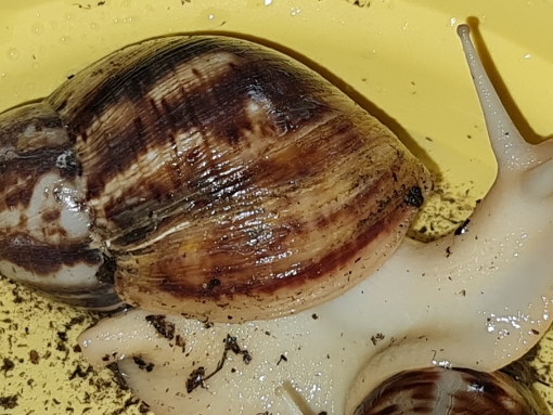 hat die Schnecke auf dem ersten Photo einen Riss im Häuschen? Schauen da Weichteile hervor?