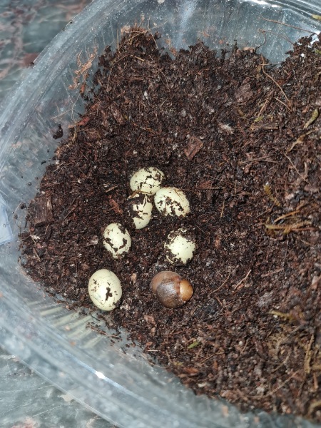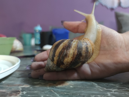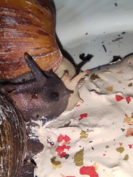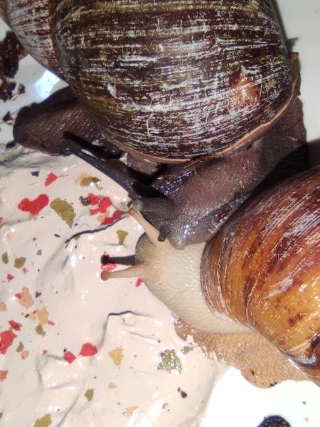 Hela, Odin, Thor, Loki und Heimdall sind Lissachatina reticulata albino.