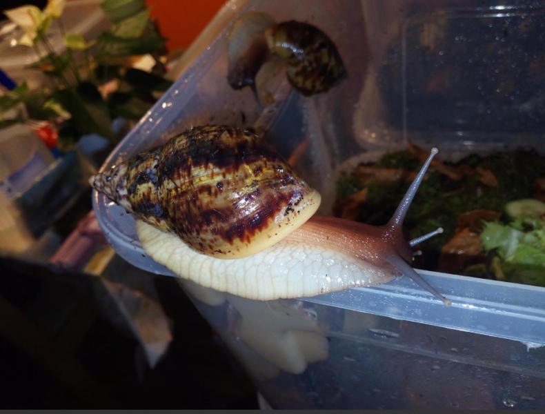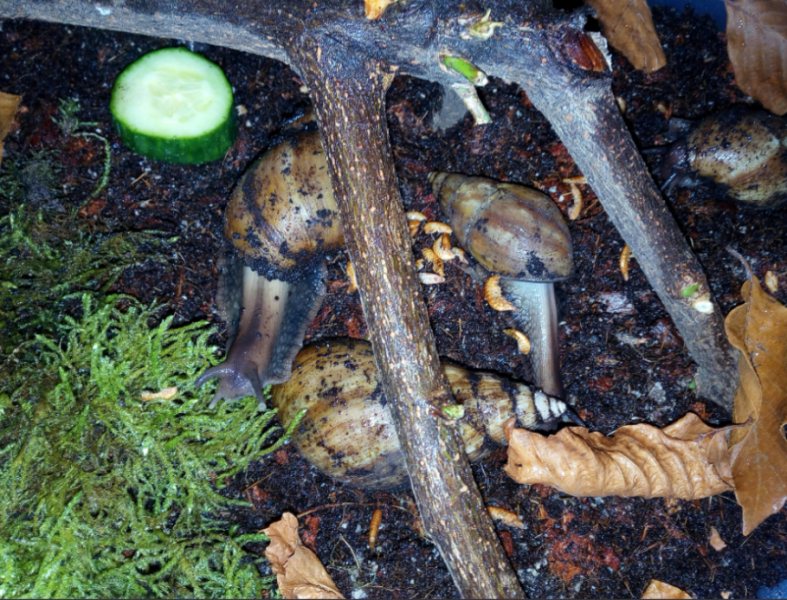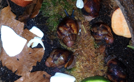Eine Art die ich sehr liebe ist Lissachatina reticulata. Immer wieder faszinierend wie schnell sie wachsen, aber leider dabei die schöne Häuschenfarbe verlieren. Zieh gerade eine neue Gruppe auf, im November etwa 6 cm, vor zwei Wochen Gehäuse gemessen, alle 5 haben fast gleichmäßig 13 - 14 cm erreicht, echt Wahnsinn.
