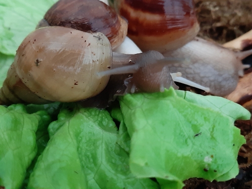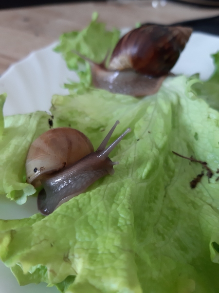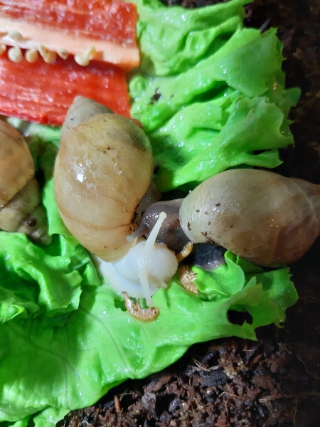 vor genau drei Wochen habe ich mir meine fünf Achatina fulica ins Haus (oder eher die Wohnung) geholt. Persönlich, nicht per Post. Die Racker waren mir die Tagesreise quer durch Österreich wert