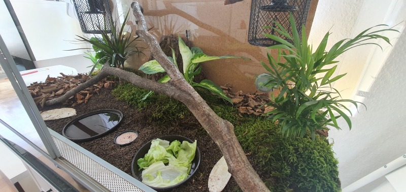 In meinem Terrarium 100x50x50 habe ich Wärmelampen mit Schutzkorb, Äste zum klettern, Moos, Laub, eine Wasserschale, Sepiaschale und zwei Pflanzen (ein Einblatt, was sie grad ständig anknabbern und ein kleiner Drachenbaum, den berühren sie gar nicht an) Habt ihr noch Vorschläge für andere Pflanzen, die sie weniger anknabbern? Würde mein Terrarium noch mehr mit Pflanzen bestücken.