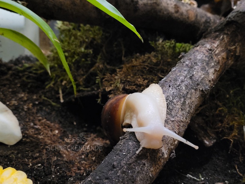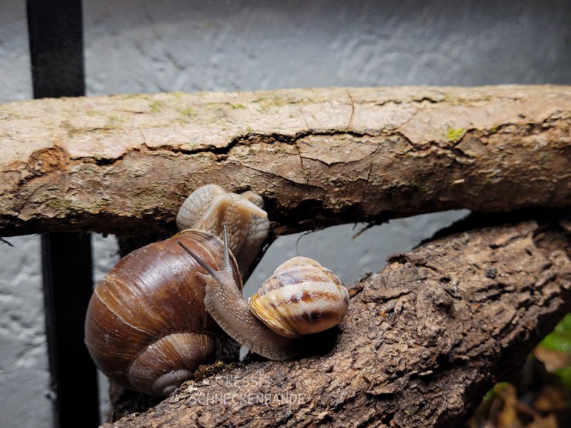 Die Pflanzen halten sich nun schon seit Anfang Mai (am 10.05. sind die Schneckis eingezogen) und keine ist seitdem zerlegt worden... sie lieben das Bäumchen und klettern fleißig dran rum (das die Schneckerei wiederum großzügig verzeiht und wächst und wächst und fast schon die Terrariendecke erreicht hat. Ich schätze, ich muss ihn demnächst ein bisschen cutten...