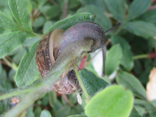 vom Rosenkäfer hat wohl schon jeder gehört. Ich konnte am Sonntagmorgen feststellen, dass es offensichtlich auch Rosenschnecken gibt.