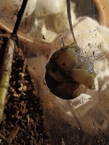 Die Luftfeuchtigkeit war früher um die 85%. Ich sprühe kaum noch und erreiche jetzt eine Luftfeuchtigkeit von 70% bis 75%. Die Erde ist seitdem eher trocken. Die Zimmertemperatur liegt bei ca. 18 Grad. Den Deckel des Aquariums, der immer einen großen Spalt offen war, habe ich seit vorgestern ganz weggelassen und nur Fliegengitter als Abdeckung. Im Aquarium befinden sich noch eine Bade- und eine Heilerdeschale.
