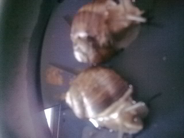 Foto 2 zeigt sie, rechts mit einem Geschwisterchen, das links im Bild zu sehen ist und man achte auf den Rand der linken Schnecke, die nicht verschollen war und auch jetzt keinen Winterschlaf hält, also das Häuschenwachstum auf dem laufenden ist.
