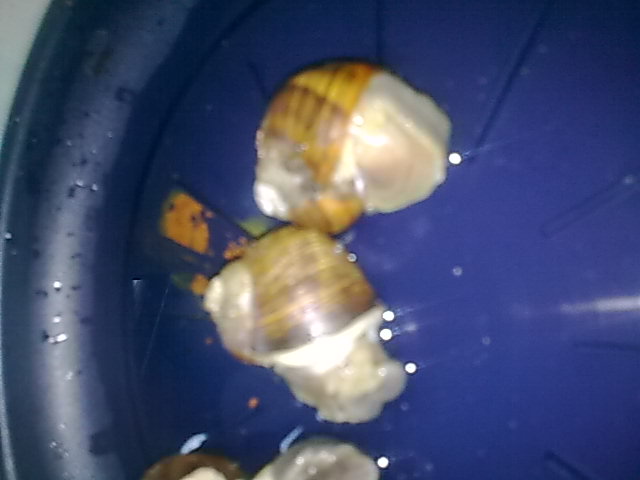 Umso erstaunter war ich, als ich vor ca. 2 Wochen zufällig unter dem Tisch saugte und da mein Schneckchen nach 3 Monaten in Trockenstarre verharrend wiederfand. Überglücklich legte ich es in etwas Wasser und ließ ihm Zeit. Nach einer Stunde war es dann auch schon am baden und trinken. s. Foto 1. da kann man sehr gut den Rand des Häuschens, das wie abgeschnitten wirkte, sehen. Die Tiere sind wie gesagt nun ca. 4,5 Monate alt und bereits 3 cm groß.