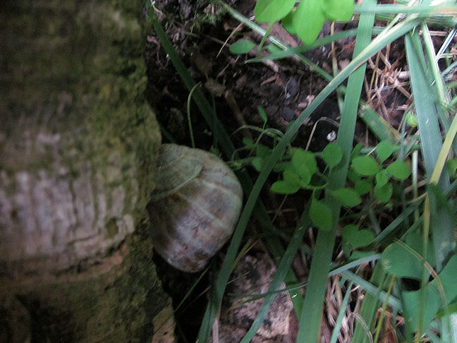 Unter dem Kork sah ich eine riesige Weinbergschnecke, erst dachte ich es sei nur ein Gehäuse, aber nein - da wohnt auch jemand drin