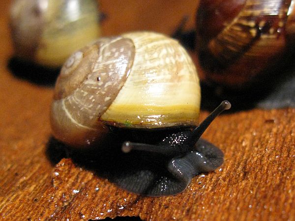 An "meinen" Schnecken ist mir aufgefallen, dass die Häuschen eine deutliche Zeichnung aufweisen, die in der Verteilung der Farbflecken der der dunklen Häuschen ähnelt. Die typische Marmorierung ist also auch bei den hellen Tieren gut zu erkennen.