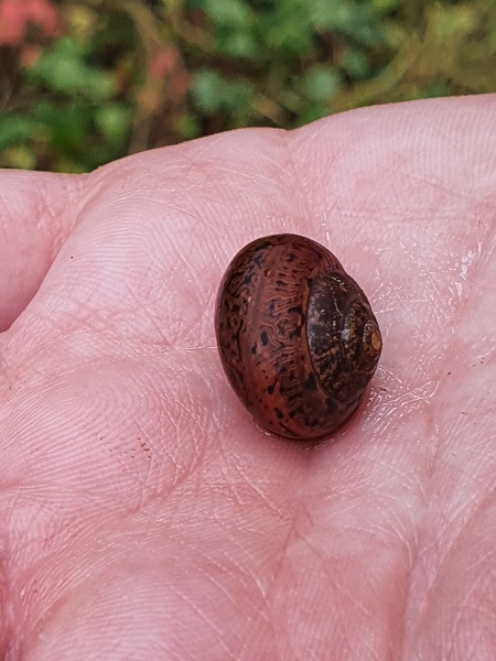 Dani und ich waren ja gestern im Wald unterwegs und außer den vielen Weinbergschnecken haben wir auch noch eine extrem hübsche kleine Schnecke gefunden, die wir nicht zuordnen konnten.