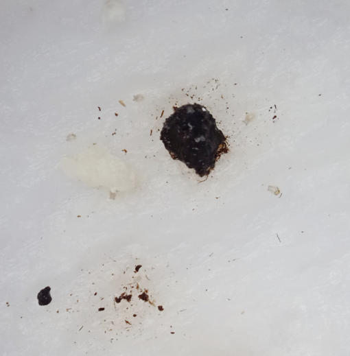 Die Erde wird aus der Schale raus geholt (überschüssiges Wasser in die Box gekippt) und komplett eingefroren (Die Erde nach Eiern zu durchsuchen und dann wieder rein zu tun, bringt ziemlich wenig weil die Gelge sehr klein sind und man mindestens eins übersehen würde)