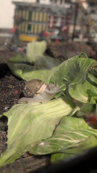 Jaaa, das ist Beamy, eine Weinbergschnecke, die wegen einem arg beschädigten Haus bei mir überwintert hat. Nächsten Monat zieht sie zu sternchen in ihr Aussengehege 8D