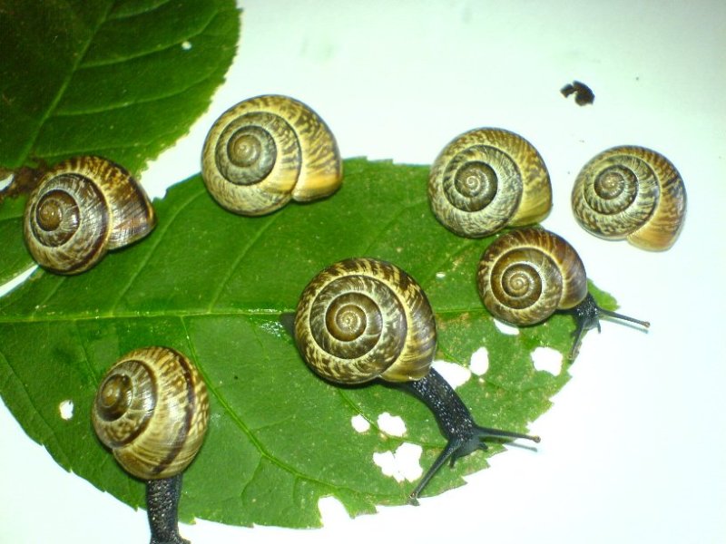 war heute an einem Feld bei mir in der Nähe unterwegs beim Schneckensuchen und hab dabei jeeeeede Menge Baumschnecken gefunden. Und richtig schöne Exemplare