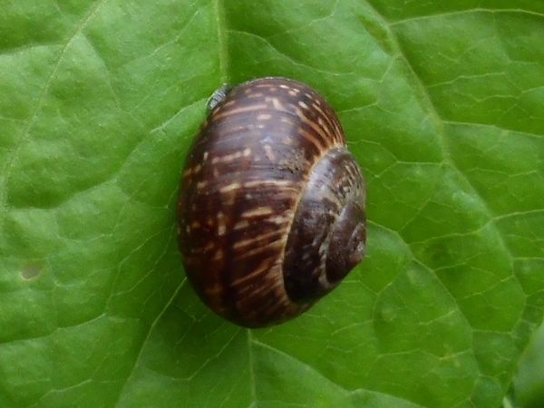 als ich Anfang Dezember im südlichen Schleswig-Holstein über den Ahrensburger Friedhof gegangen war, entdeckte ich in der Ritze eines Türrahmens einen braunen glatten Huckel, den ich näher untersuchte. Ich war etwas erstaunt, eine Hausschnecke an so relativ exponierter Stelle vorzufinden. Da ich sie aus der Ritze rausgeeholt hatte, kam sie in ein Döschen. Irgendwann war sie auch zwischendurch kurz munter geworden und hatte sich am Deckel angeheftet. Später habe ich sie von allen Seiten fotografiert (um sie besser bestimmen zu können), aber rauskommen wollte sie nicht, wenn ich dabei war.