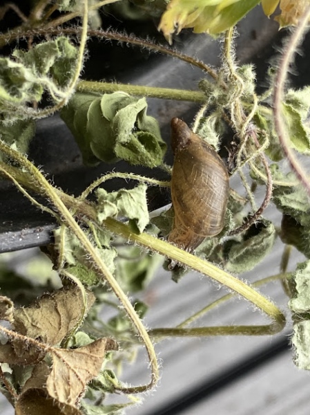 Hab grad am Balkon gewerkelt und in einem Blumentopf eine kleine, spitze Schnecke entdeckt. Ist das eine Bernsteinschnecke? Das hat die google-Suche jedenfalls ergeben.