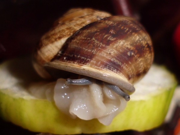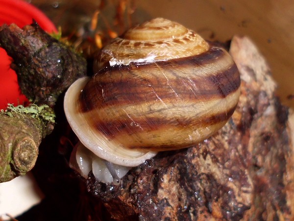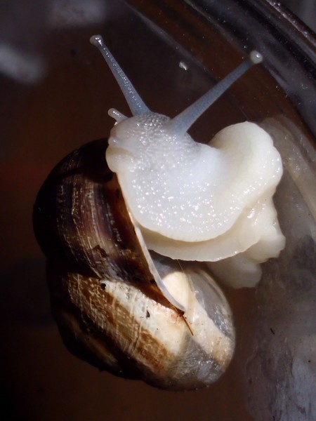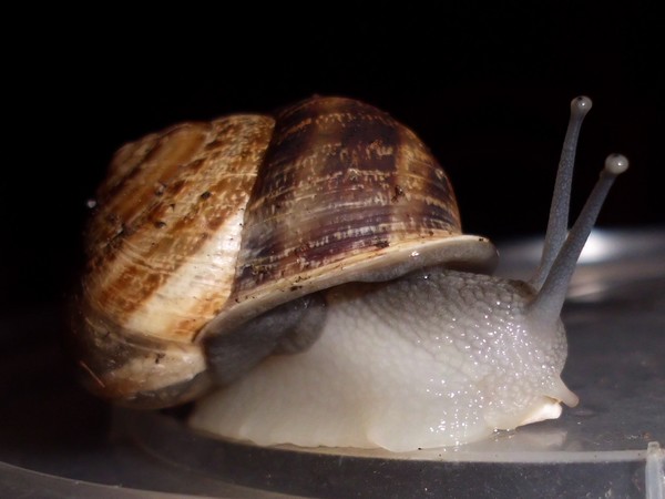 Im Moment hat sie wieder die normalen Schlafphasen und ist zwischendurch munter. Und wenn ich ihr den Finger in den Weg halte, reckt sie sich etwas vor und raspelt ein wenig daran. Das erste Mal war ich doch etwas erschrocken, da hatte ich nicht mit gerechnet. Die Bänderschnecken machen das auch, das habe ich später mal getestet.