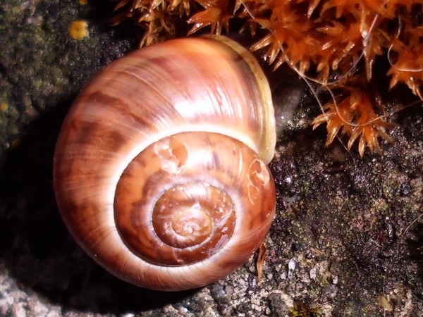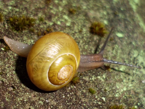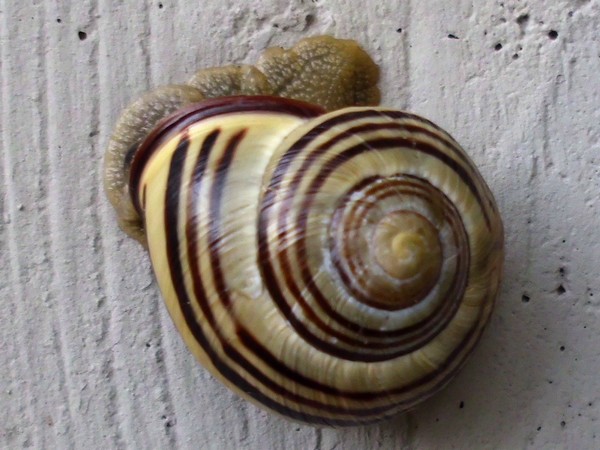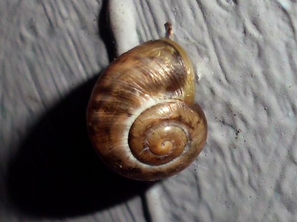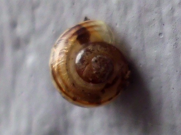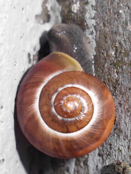 Gestern war ich mittags noch mal im Kaiser-Wilhelm-Park, hauptsächlich Libellen gucken, aber natürlich habe ich auch mal an dem schneckenträchtigen Weg nach Schnirkel und Co. geschaut. An einem Baum saß diese hübsche, wenn auch ganz leicht verbeulte.