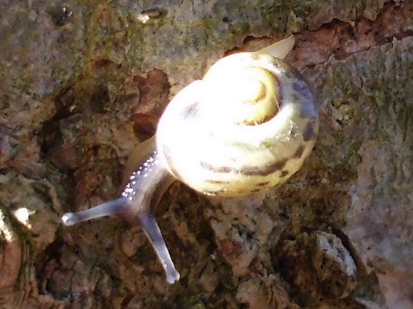 An zwei Stämmen in der Nähe dann noch diese beiden kleinen Knubbels, bei denen ich aber nicht sicher bin, ob es Bänderschnecken sind. Niedlich sind sie aber allemal.