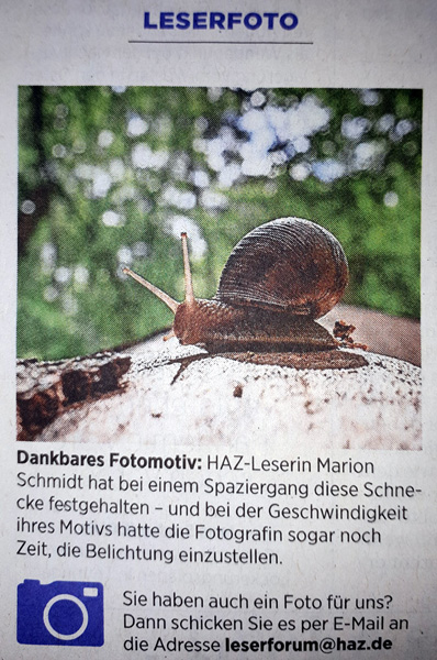 Ende Mai bekam ich das Foto eines Artikels aus einer Hannoverschen Tageszeitung zugeschickt.