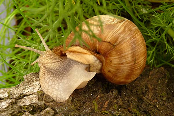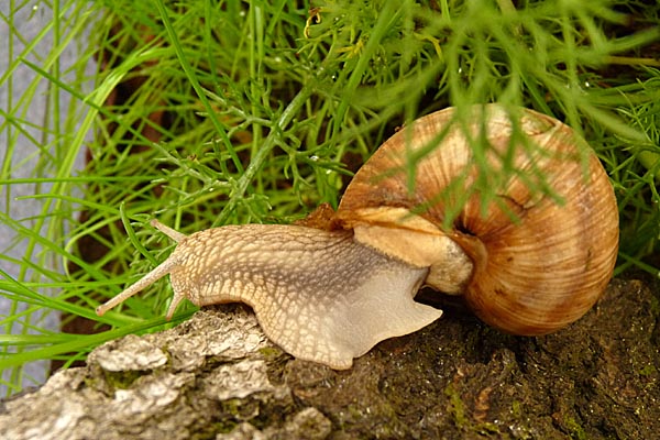 Nachdem Marie wochenlang nur in ihrem Häuschen war und praktisch nix gegessen hat - ich hatte sie schon fast abgeschrieben gehabt, quasi verlorener Lebenswille - hat sie sich heute mal gezeigt. Erst hörte ich sie von innen an ihrem Häuschen rumknuspern (da hingen noch Reste vom Kalkdeckel, Frühjahrsputz sozusagen), dann aß sie Löwenzahn, kroch schließlich ein Rindenstückchen hoch. Lange Rede, kurzer Sinn: ihr wächst ein neues Schwänzchen!