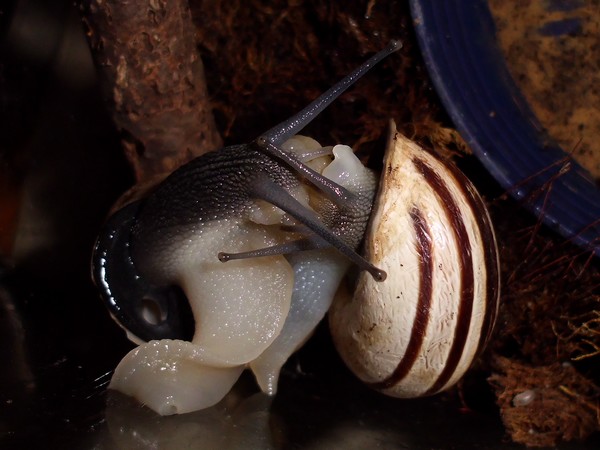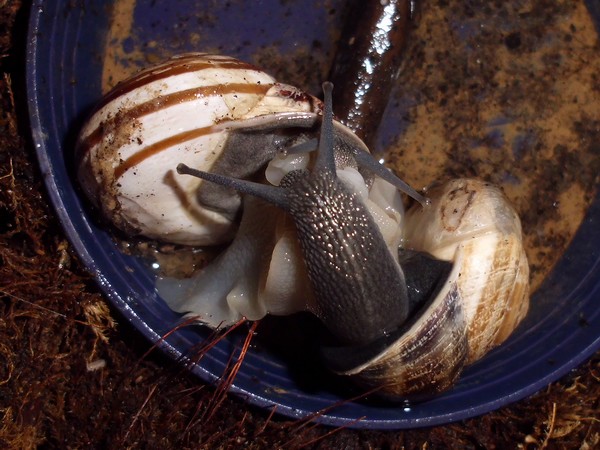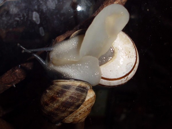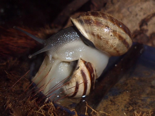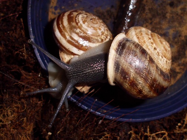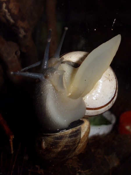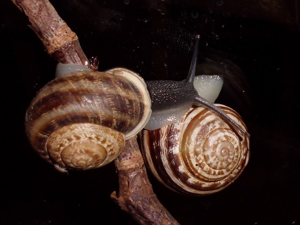 Bei den Bänderschnecken hat man immer den Eindruck von einem kleinen Boxkampf, aber bei den Nudelschnecken wirkt es wirklich sehr liebevoll.