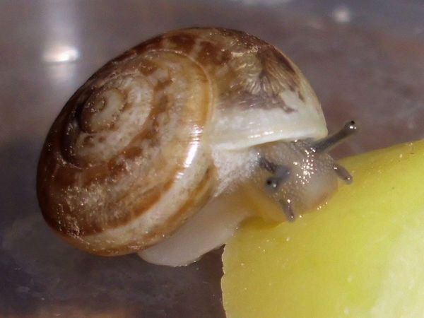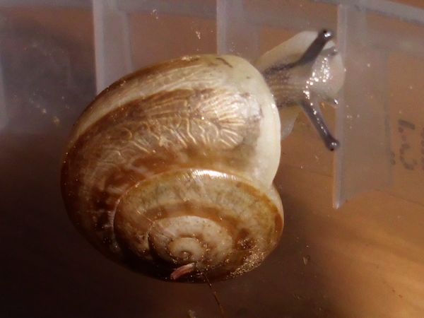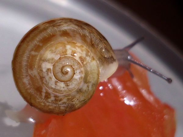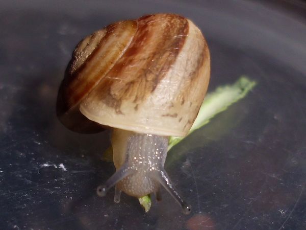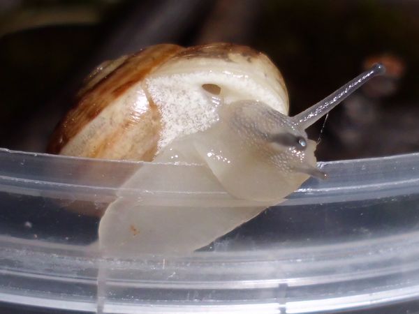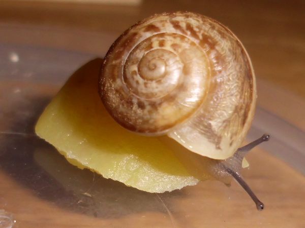 Sie hatte sich nicht komplett in ihr Häuschen zurückgezogen, aber alle Fühler eingezogen. Sieht irgendwie seltsam aus.