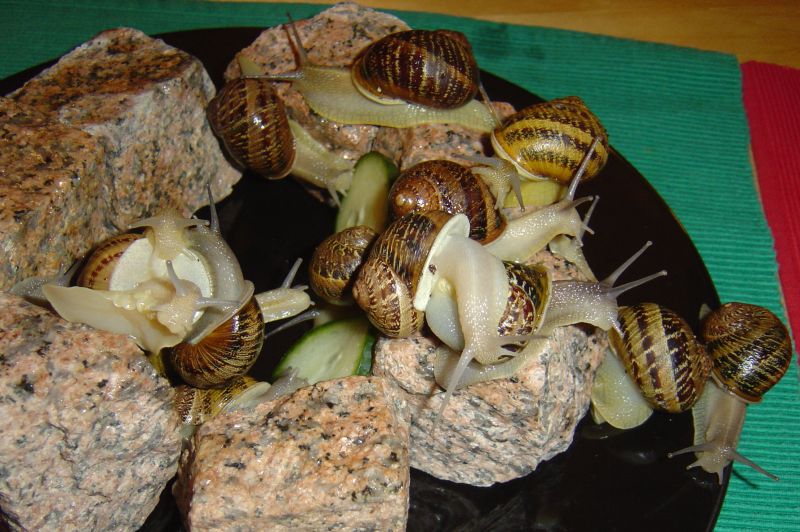 Wird das Terrarium mal gereinigt, neu arrangiert und neue Erde eingefüllt (aufgeweichte Cocos-Briketts mit Kalk angereichert), müssen die Schnecken mal für eine Weile woanders rumspielen. Achtung, dass keine entwischt.