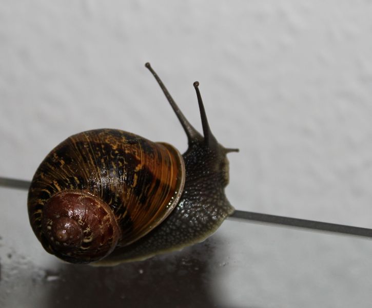 Schnecken zu beobachten ist ein prima Zeitvertreib. Sie lieben es offenbar, in der Gegend herumzugucken und mit ihren Fühlern nach Gerüchen zu schnuppern. Da kommt manch seltsames Posing bei heraus. Weit können sie zwar nicht sehen, aber „Glotzen“ können sie perfekt.