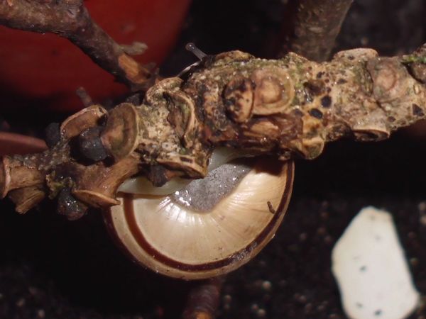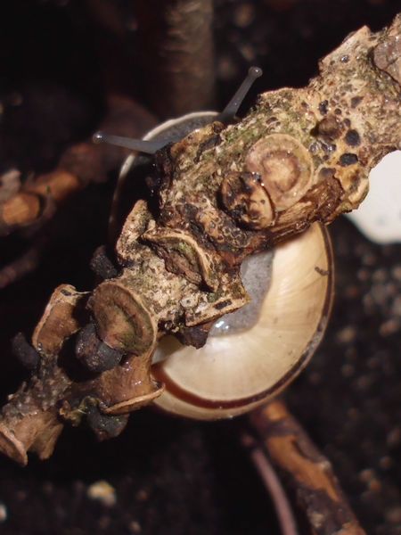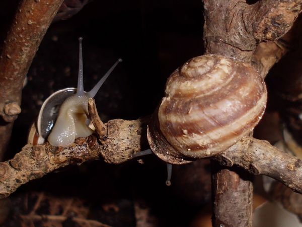 Danach ging es wieder den nächstgelegenen Zweig hinauf. Aber er "erobert" nun das ganze Terra, bleibt nicht mehr in der hintersten Ecke, sondern hat sich vorne einen Schlafplatz gesucht, gleich neben Giovanni. Das ist ja meine größte Nudelschnecke. Ob Robby sich gedacht hat, so ein Großer kann ihn gut beschützen?