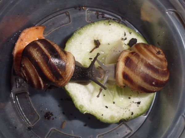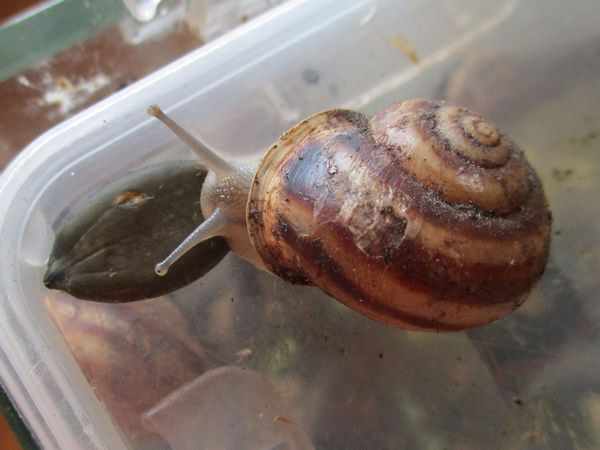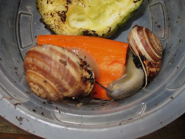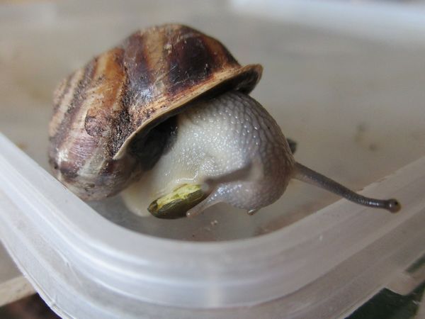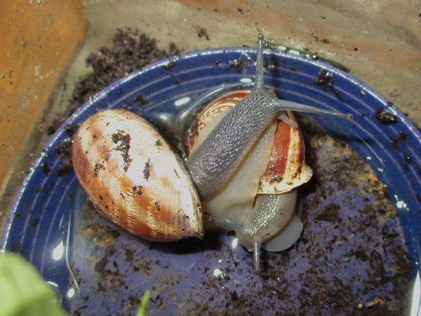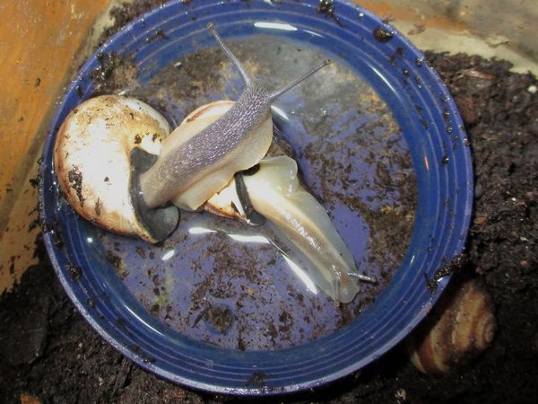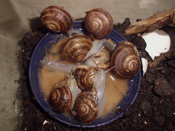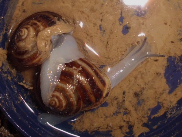 Die Heilerde bedeckte mal den ganzen Boden der Badeschale. Dann kommt aber meistens schnell einer zum "Reinemachen". Die Lümmel tun aber nur so als ob sie saubermachen wollen. Was die an "Schneckengirlanden" im Wasser lassen...