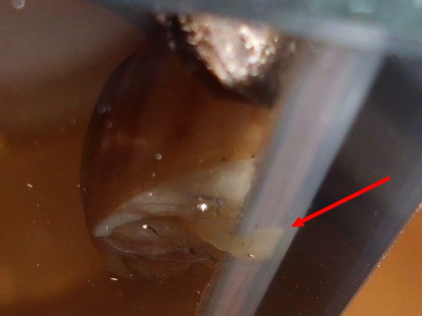 Später unternahm sie noch viele ausgiebige Wanderungen die Glaswände und die Abdeckung entlang. Vermutlich war sie doch froh, aus der recht beengten Dose heraus zu sein.