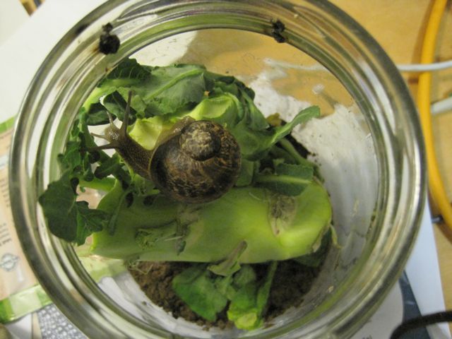 Seit Dezember 2009 teile ich meine Wohnung mit Nelli! Nelli kam in einem Bio-Blumenkohl vermutlich aus Frankreich ins Haus - und zwar erst mal in den Kühlschrank. Als ich den blinden Passagier zwischen Strunk und Blättern fand, war ich mir nicht sicher, ob sie überhaupt noch lebte. Weil ich aber schon als Kind ein Herz für Weinbergschnecken hatte und wusste, dass Schnecken auch mal tagelang gar nichts tun, habe ich sie kurzerhand samt Blumenkohl-Proviant in eine Kiste gepackt und gewartet. Und siehe da: nach zwei, drei Tagen lugten plötzlich Fühler hervor!