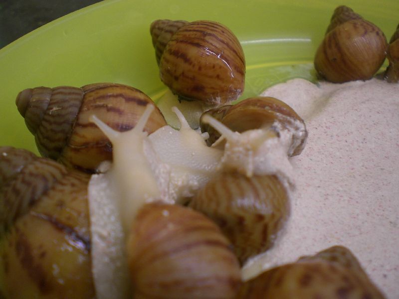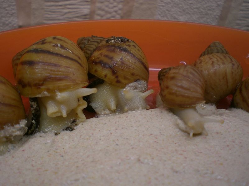 Es ging drunter und drüber, gleich 5 übereinander, dann wieder mit der "Nase" am Grund lang und es furzte und schmatzte am laufenden Band. Mein Mann meint immer "deine Schnecken machen beim Fressen unanständige Geräusche"
