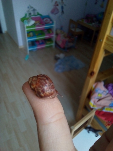 Heute hatte meine Tochter ihre Schnecki auf der Hand. 8D