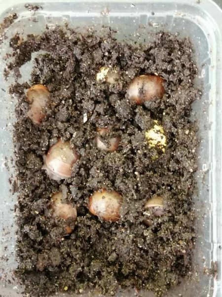Die Dose habe ich anschließend im kleinen Aquarium in der Erde vergraben. Darauf stand dann eine andere Dose mit einem Schneckenbaby, das mit der Erde mit den großen Schnecken mitkam.