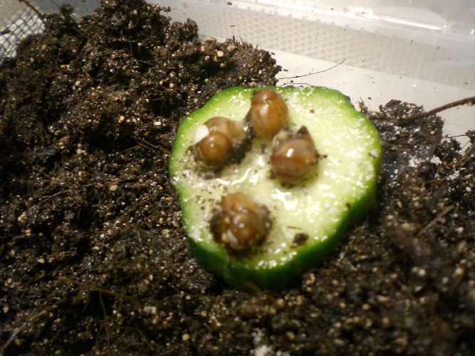 wie ich bereits angekündigt habe, möchte ich zu den hoffentlich bald schlüpfenden A. achatina gern auch ein paar Bilder posten. Der Thread auf dem Marktplatz war an sich ja dazu gedacht, einmal abzuleuchten, ob denn überhaupt Interesse an Nachzuchten besteht. Da dem so ist, will ich natürlich auch mein Möglichstes tun, damit die Eier es gut haben und die kleinen Schnecken bald gesund und unversehrt schlüpfen können. Mein Ehrgeiz ist groß, dass diese Nachzuchten einen deutlich besseren Start ins Leben haben, als es bei meinen großen der Fall war.