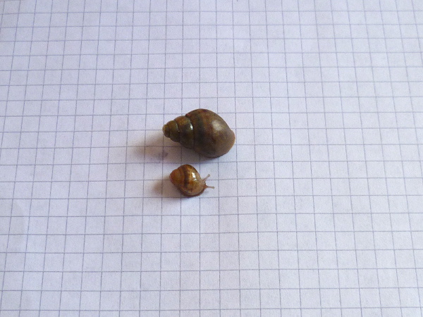 Hier seht ihr eine der vier großen mit ein paar Schneckenkindern, ca. 3 Tage nach dem Schlupf