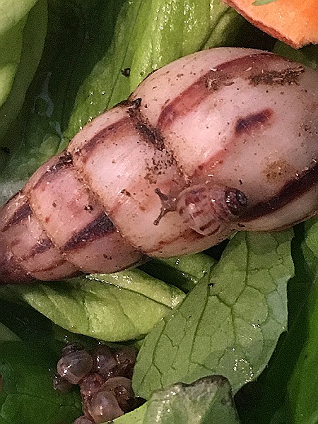 Die kleinen Limicolraria agathina sind unterschiedlich groß , weil die größere der Babys ( auf der grossen Schnecke ) schon vor gut drei Wochen geschlüpft ist. Ich aber mit Fotos noch warten wollte um zu sie besser zu erkennen. Und nun ein paar Bilder . Liebe Grüße Bambina