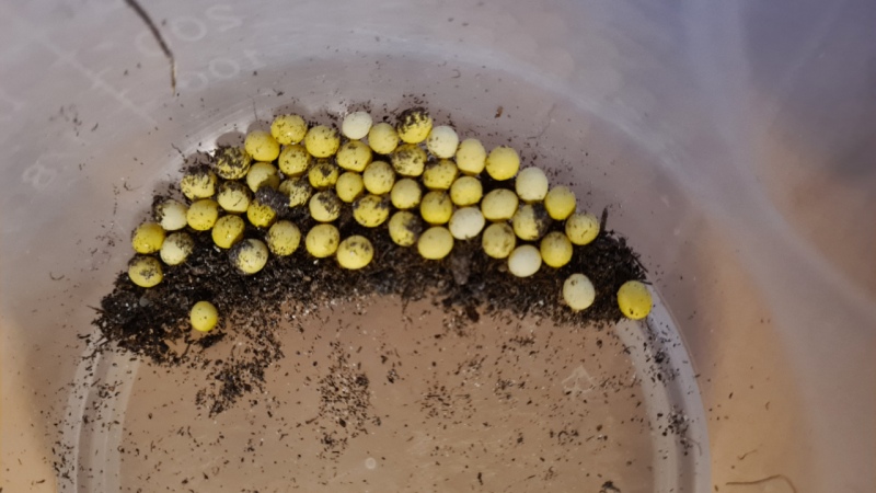 Wenn du in kleiner Zahl welche schlüpfen lassen willst, einfach in eine kleine Box auf Erde legen und Geduld haben