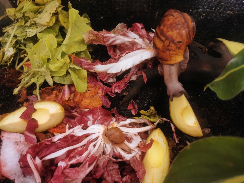 Mein Interesse an ("F"-Wort) ist auch, ehm, "überschaubar" und so habe ich meine schlafenden pomatias beobachtet und nebenbei gelernt, dass Bänderschnecken Süsskartoffel auch beraspeln können, ohne dabei mit den Fühlern zu wackeln.