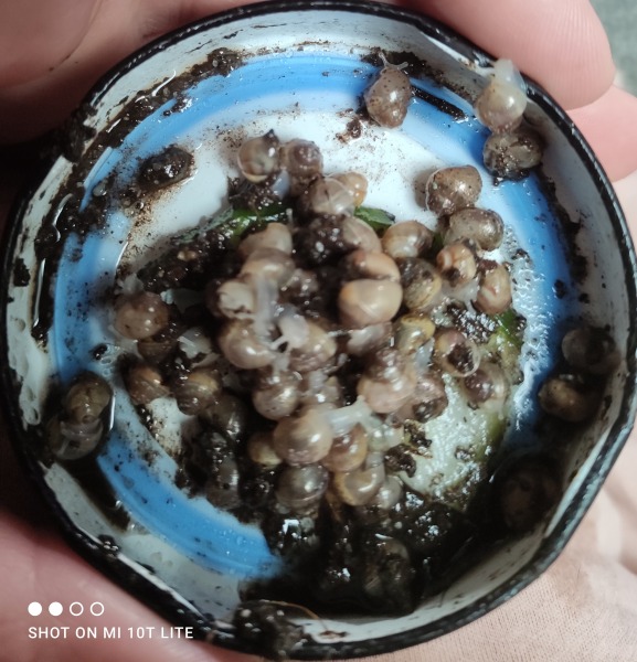 Wie oft sammelst du sie mit den Händen ein? So kleine Schnecken können sehr leicht kaputt gehen, wenn man sie anfasst, weil sie noch sehr sehr zart sind. Ich fasse ganz junge Babies gar nicht direkt an, sondern hebe sie nur mit dem Substrat, an dem sie kleben hoch. Zum Schlafen haben sie schräg auf dem Boden liegende Rindenstückchen oder Blätter. Eine halbe Kokosnussschale eignet sich auch vorzüglich als Schlafgemach.